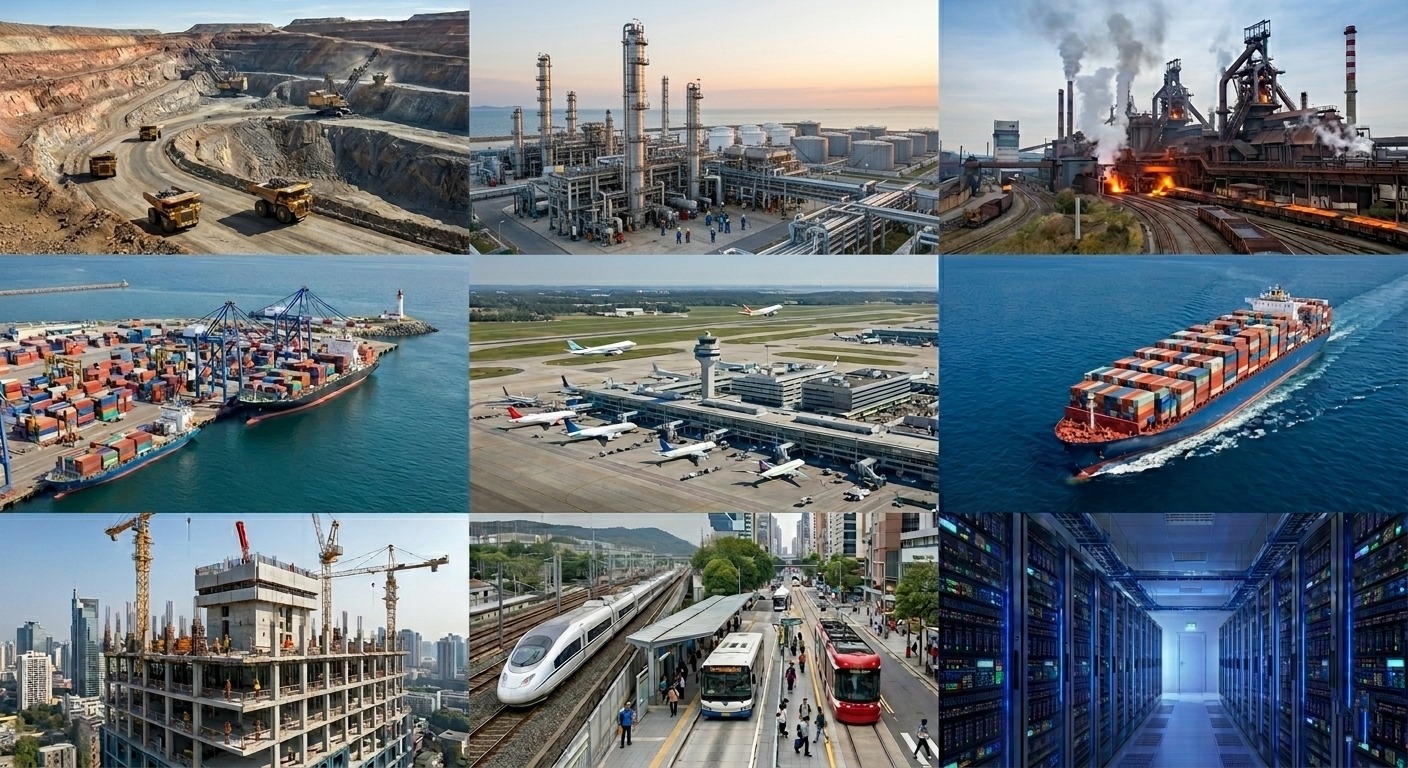 礦業|石油和天然氣|鋼鐵|海岸|機場|遠洋|建造|公共交通|資料中心