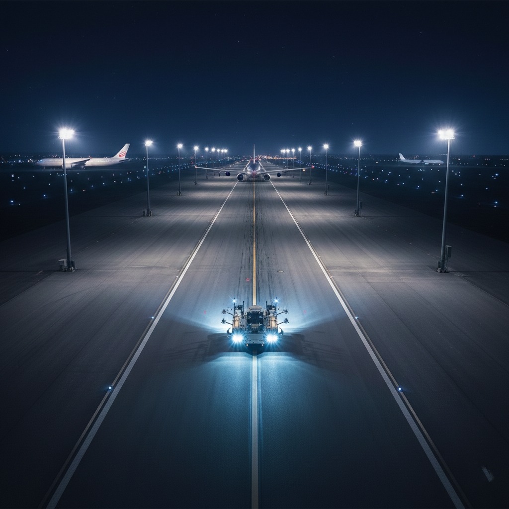跑道周邊受飛機引擎強大氣流影響,塵土與雜物極易附著於鏡頭。傳統雨刷在乾燥磨擦下可能損傷玻璃,影響 FOD 自動偵測系統的精準度。